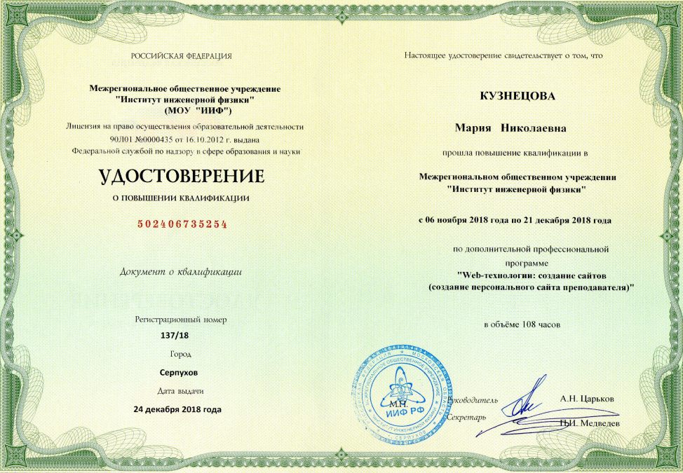 Сайт Кузнецовой Марии Николаевны